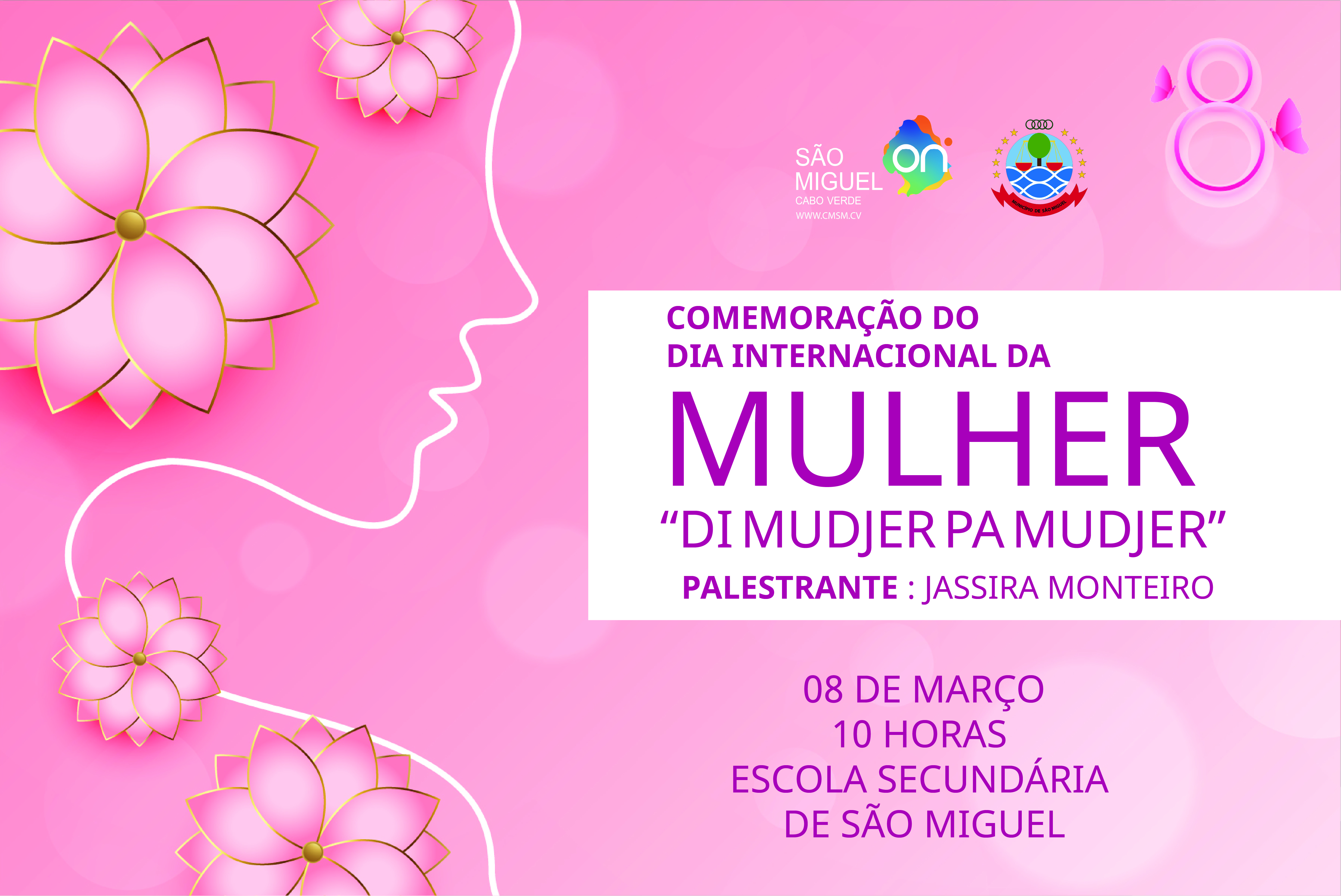 No próximo domingo, 8 de março, pelas 10 horas, na Escola Secundária de São Miguel, vamos reunir mulheres de todo o município para assinalar o dia que lhes é dedicado, numa atividade que se prevê ser um momento de partilha de informações importantes sobre temas transversais, nomeadamente “saúde da mulher”, um tema que será abordado pela Enfermeira Leocádia Furtado, e um tema macro intitulado “di Mudjer pa Mudjer”, com a ex-autarca Jassira Monteiro.